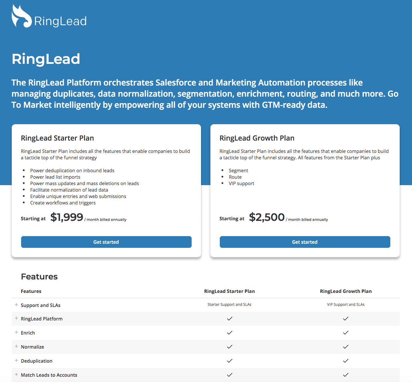 The RingLead Platform orchestrates Salesforce and Marketing Automation processes like managing duplicates, data normalization, segmentation, enrichment, routing, and much more. Go To Market intelligently by empowering all of your systems with GTM-ready data.